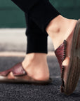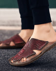 🐙 Men’s Leather Octopus Slippers - Closed-Toe Outdoor Comfort (Brown/Black/Red)