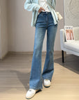 Women’s High Waist Bootcut Jeans - 70% Cotton Slimming Trousers (Light Blue/Black Gray, S-2XL) Japanese-Korean Casual Style