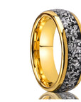 Gold Tungsten Steel Ring with Meteorite Inlay - Unisex Minimalist Band (US 7-13) Electroplated