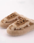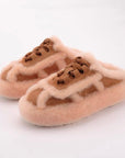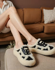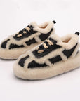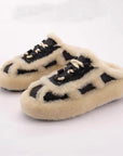 🐑 Women’s Cozy Lamb Wool Slippers – Thick-Sole Korean Style (Khaki/Black-White, Sizes 35-40)