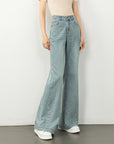 Women’s High-Waist Flared Pants – Slimming & Comfortable (Blue, Micro-Elastic Cotton)