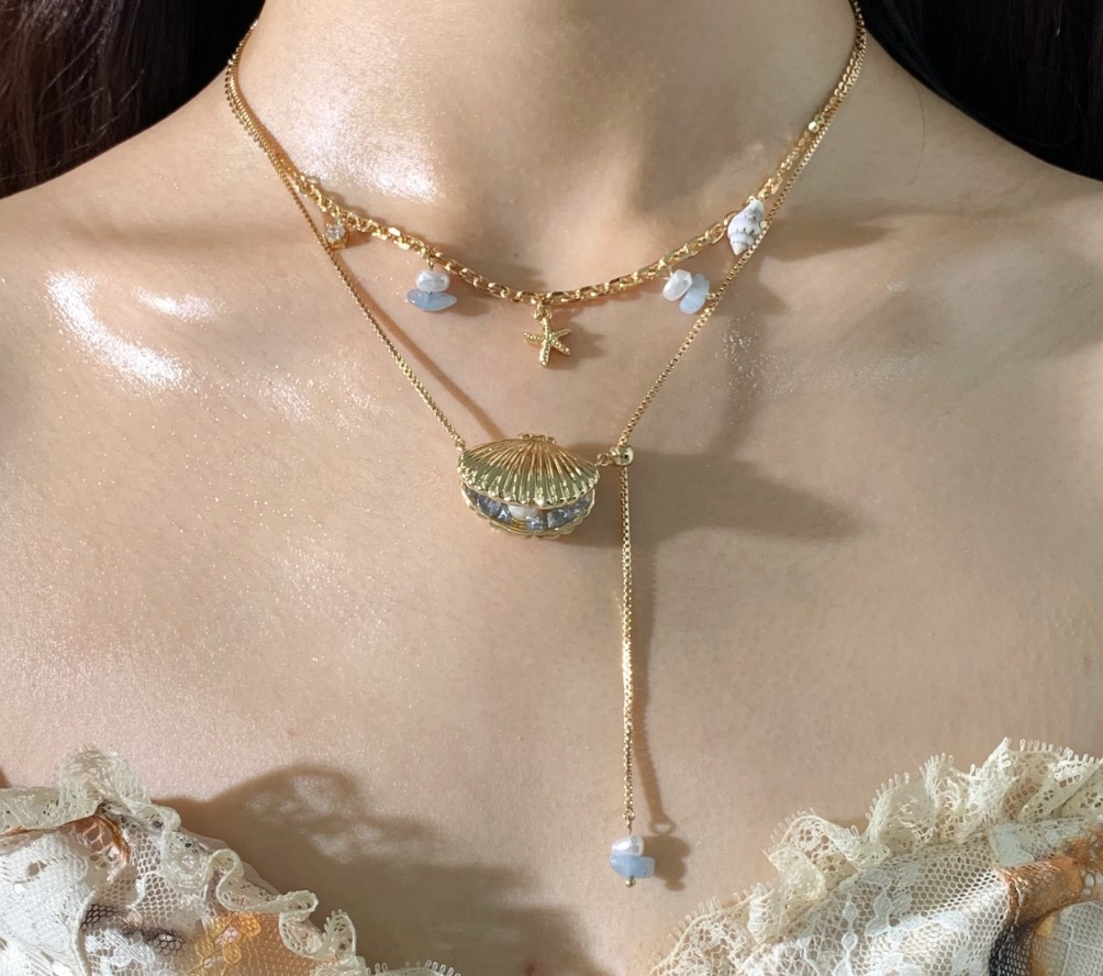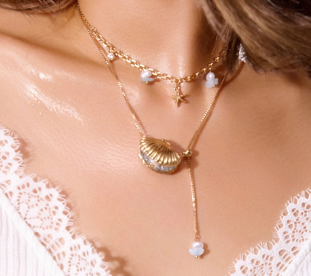 🌊✨ Ocean Goddess Necklace - Golden Shell Clavicle Chain