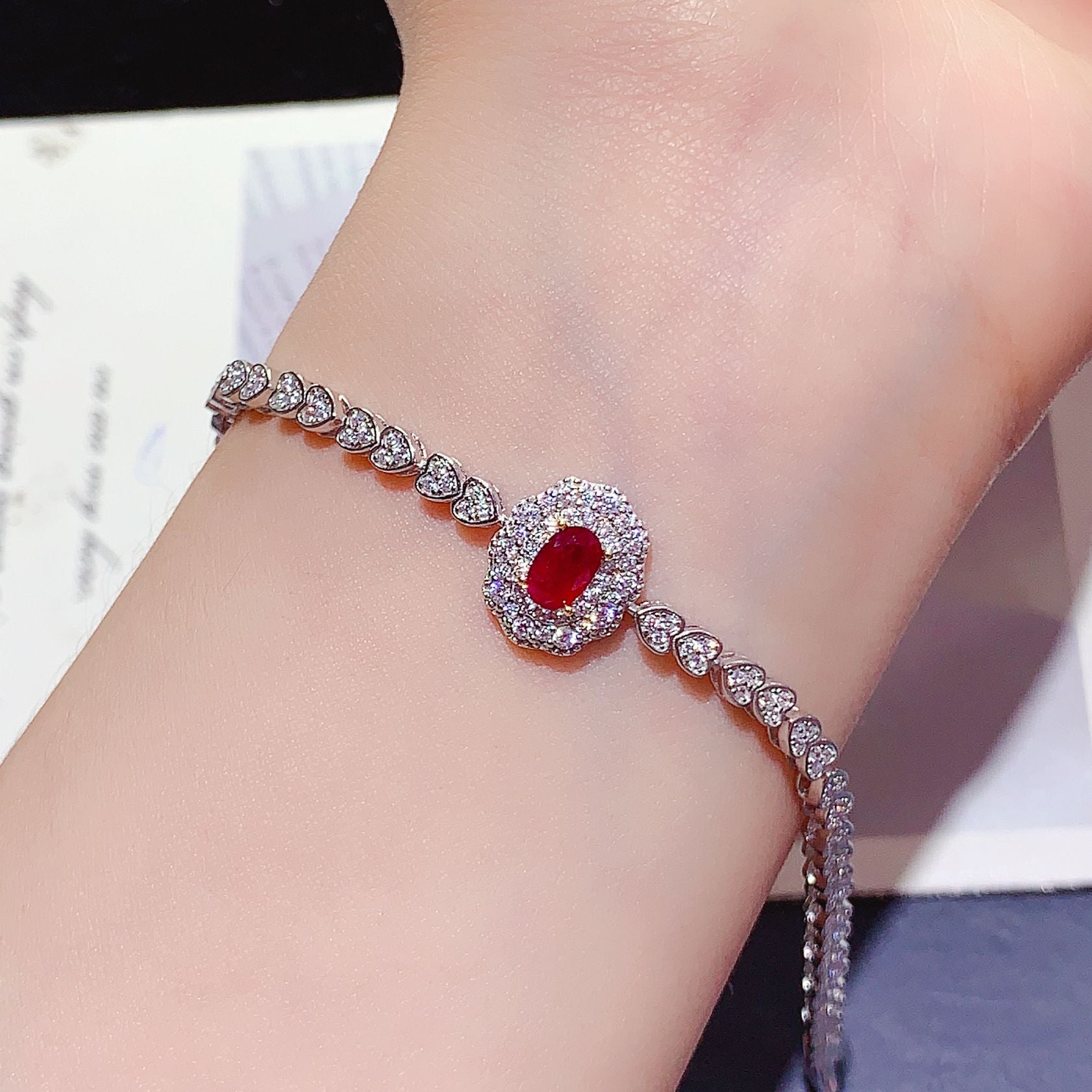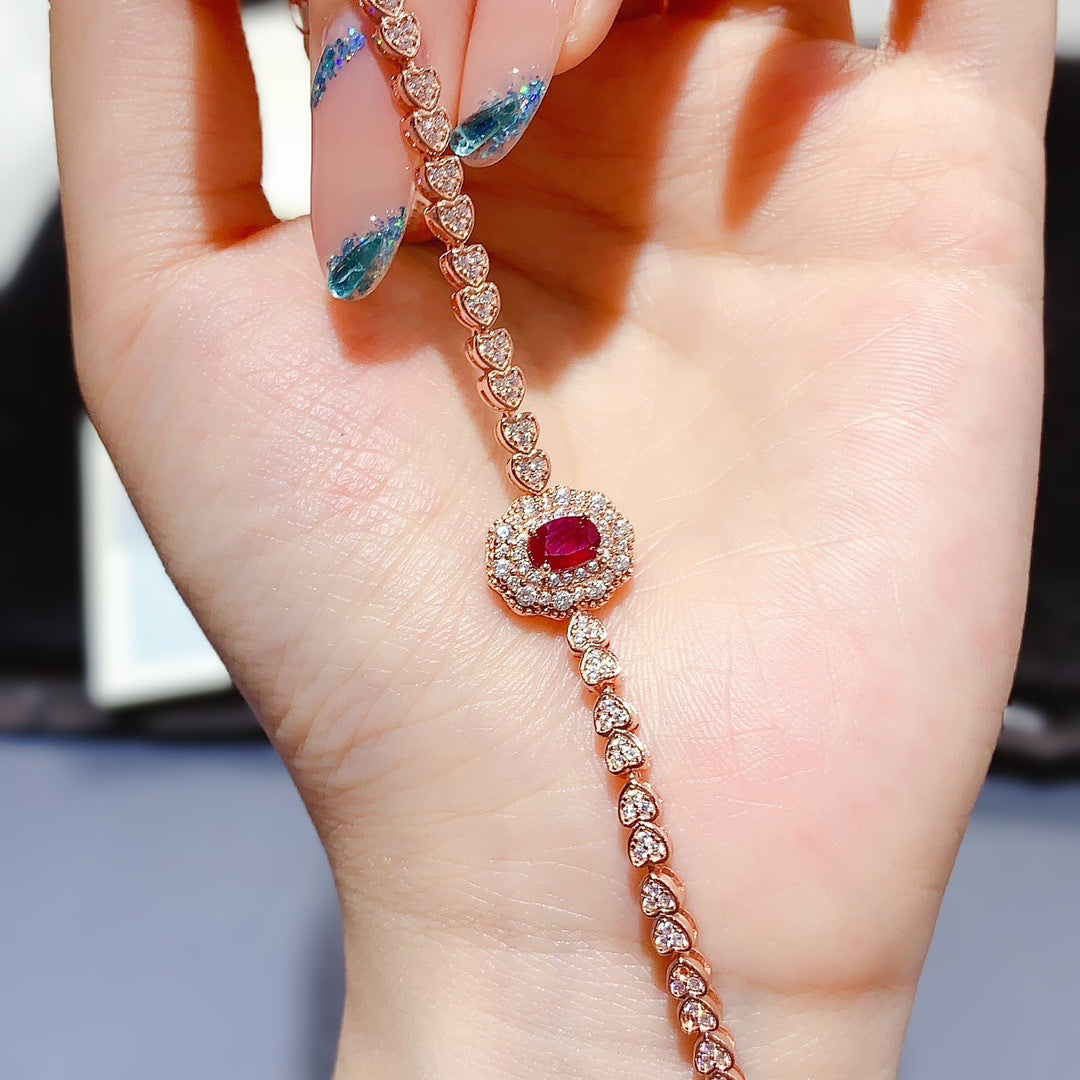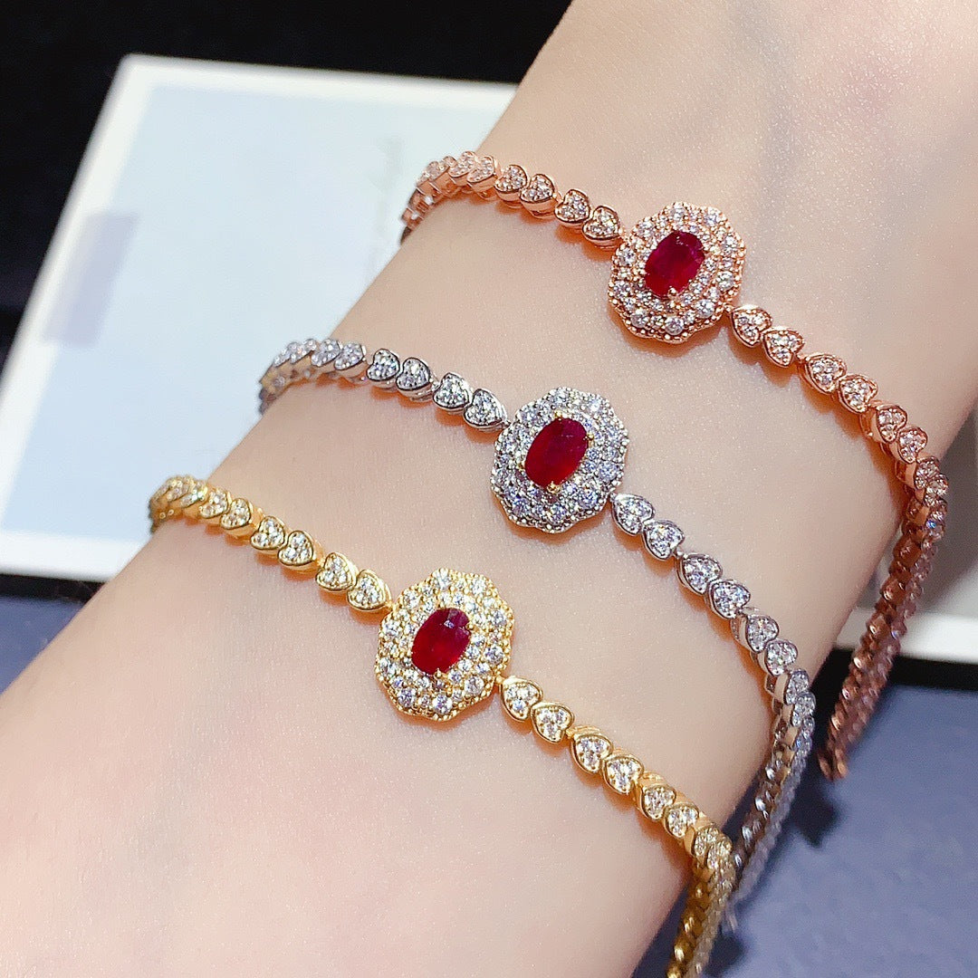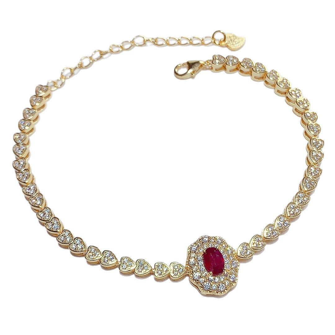 Women’s Natural Ruby Bracelet – 0.8ct Pre-Stone Gem, 18K Gold-Plated Hand-Inlaid 925 Silver Jewelry