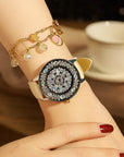 Montre de luxe étanche en cuir véritable pour femme avec diamants
