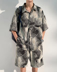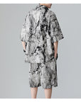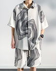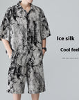 Ensemble de plage en soie glacée tropicale pour homme – Imprimé floral, manches courtes + pantalon ample (tailles 7XL) – Protection UV et séchage rapide