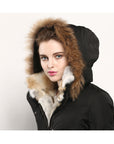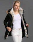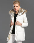 Manteau mi-long matelassé en fourrure de lapin pour femme