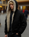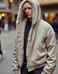 Doudoune d'hiver à capuche pour homme – Col en fourrure amovible – Style streetwear ample