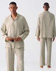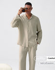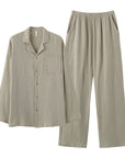 Pyjama en gaze tissée pour homme – Vêtements d'intérieur en coton gris clair (L-XXXL) – Cardigan respirant à manches longues et pantalon pour la maison et les voyages
