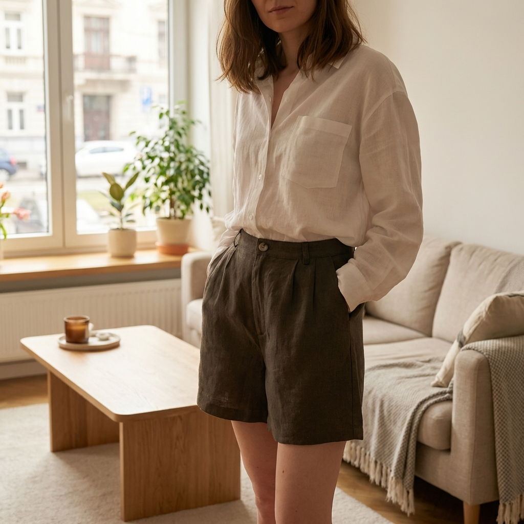 Women’s 100% Linen High-Waist Shorts – Breathable Elastic Waist Casual Shorts with Pockets