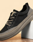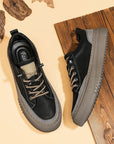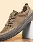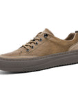 Men's British Style Leather Shoes - Round Toe Lace-Up Casual Loafers (Black/Khaki)
