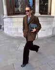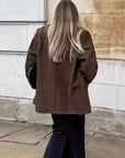 Women’s Faux Suede Suit Jacket – Retro Art Style with Modern Comfort