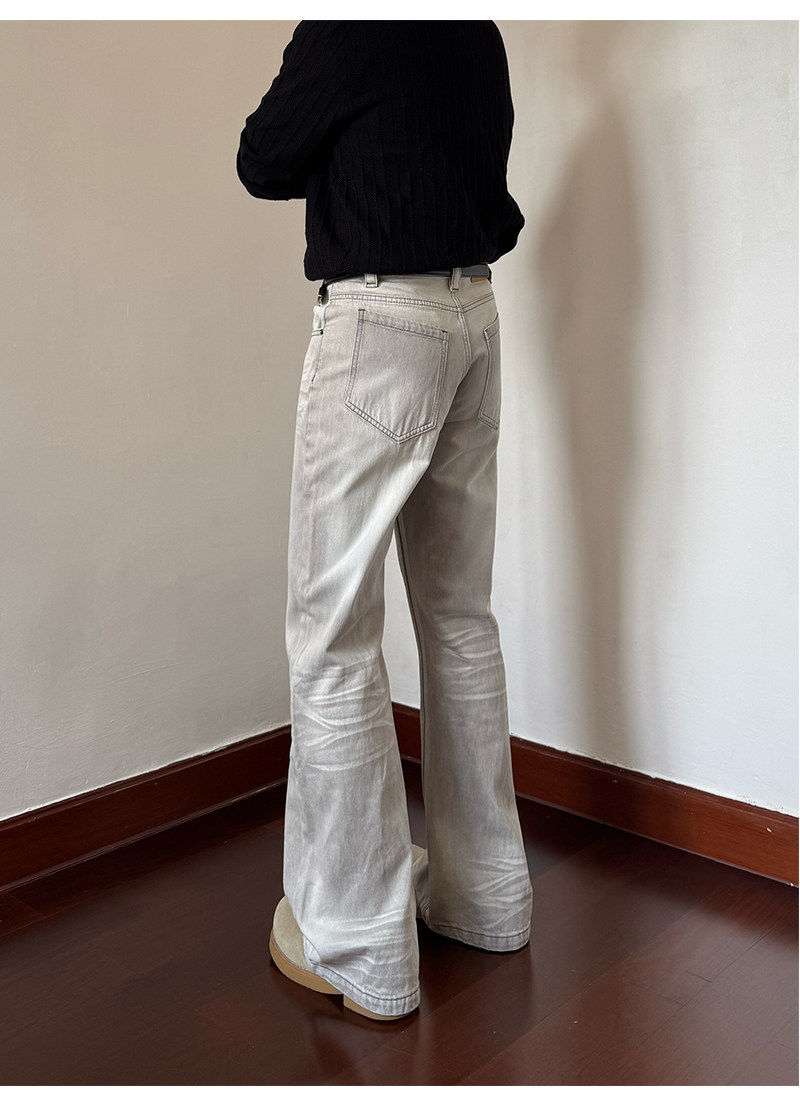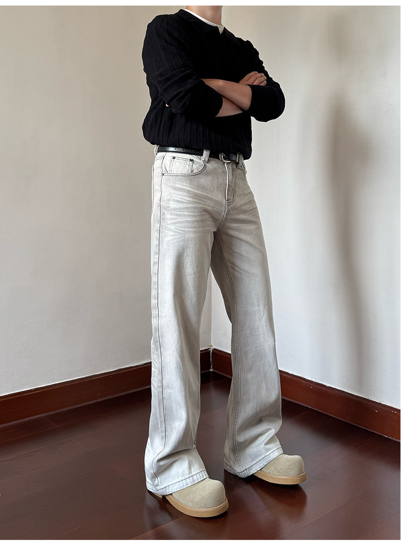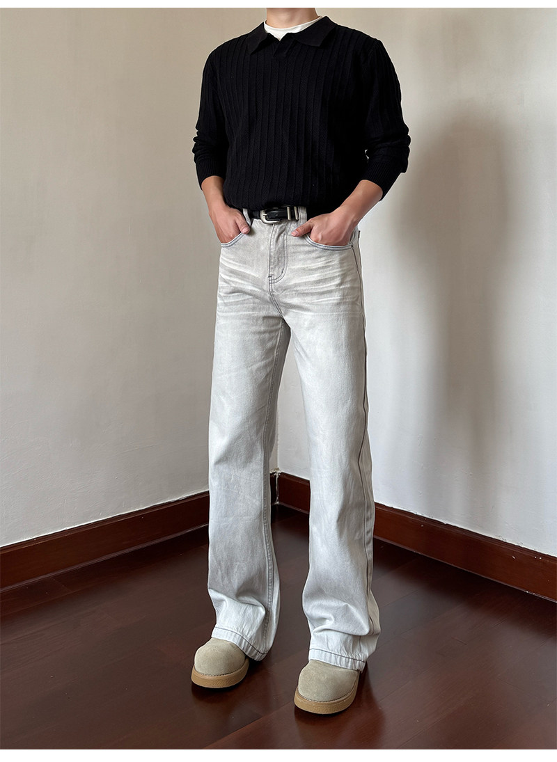 Men Clean fit Slim Straight Casual Jeans – White Gray Vintage Distressed High-Street Denim