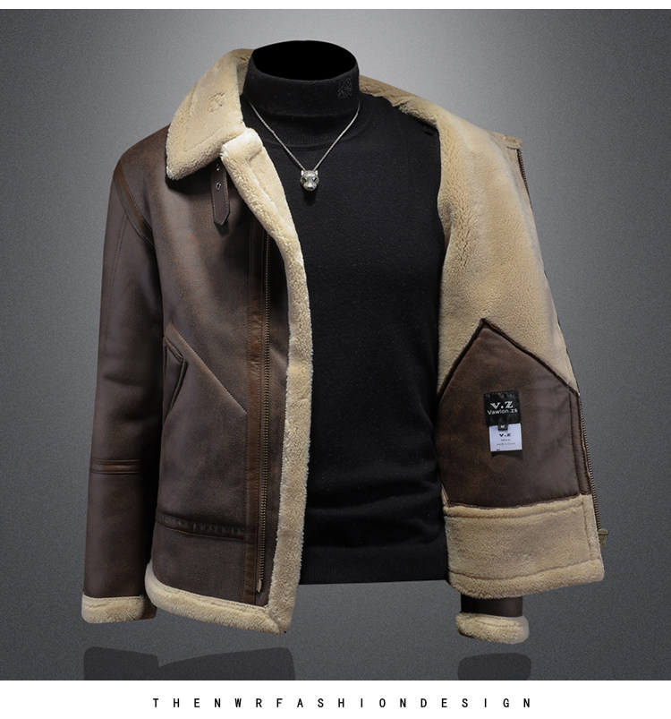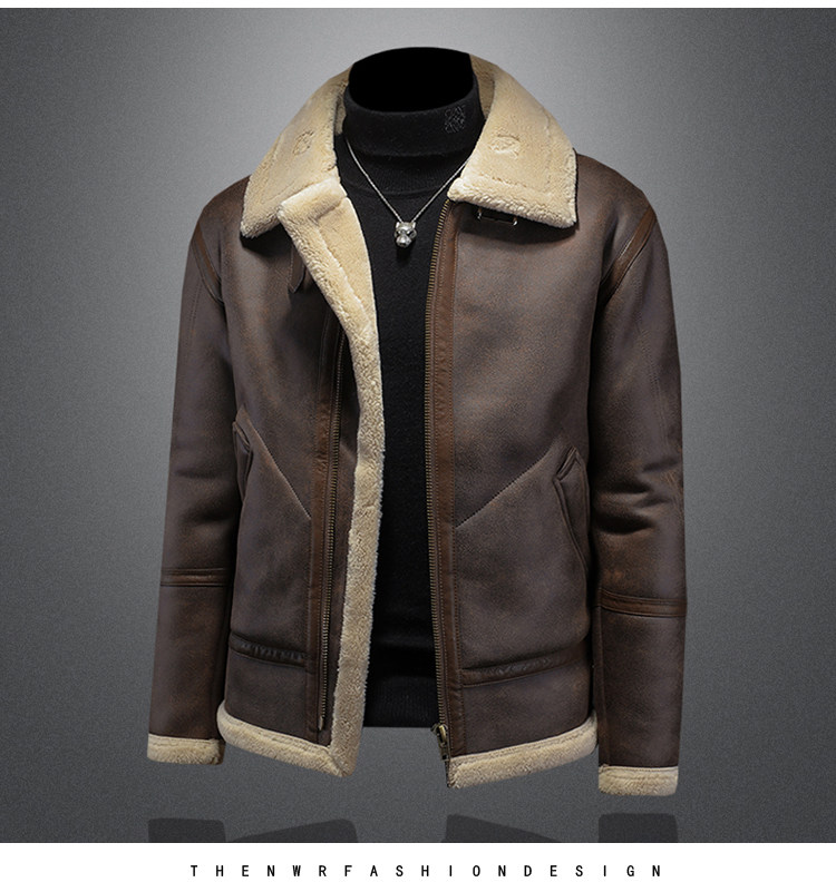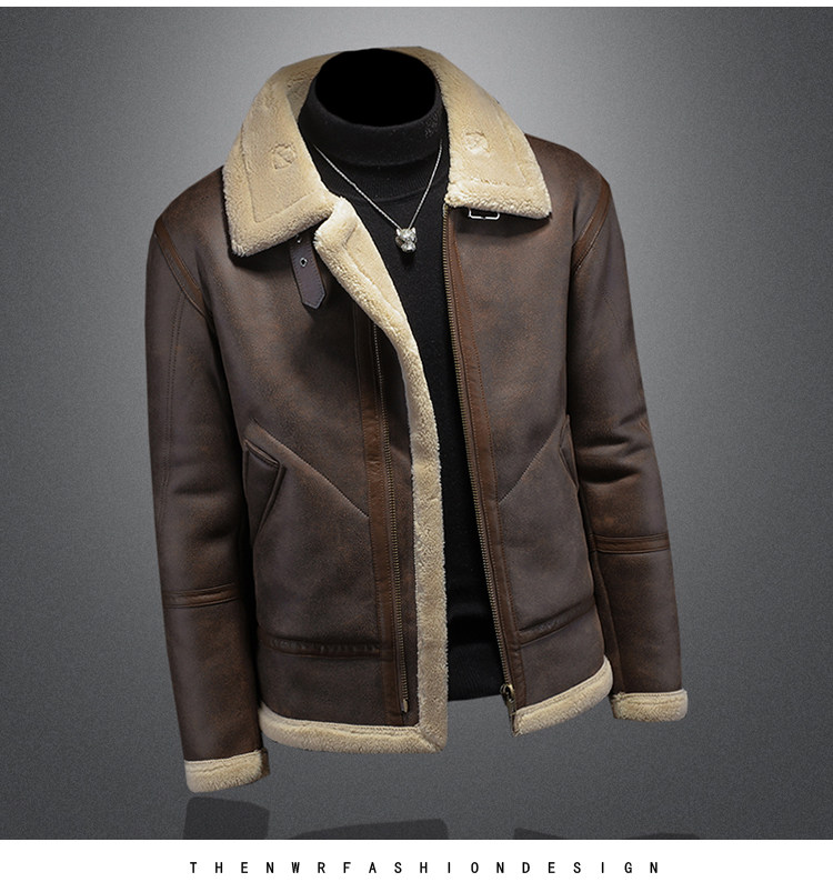 🧥 1 × Men’s Leather Fur Lapel Jacket