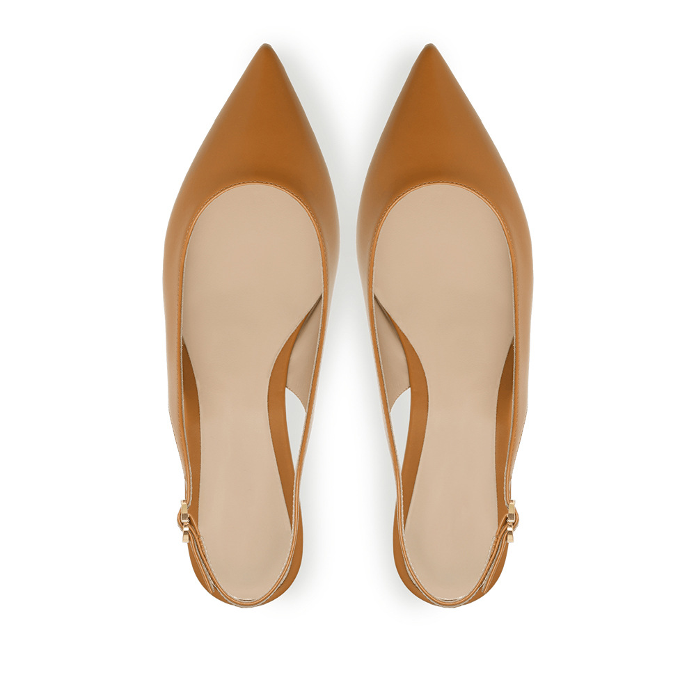 Women’s Pointed-Toe Flats – Chic Low Heel Pumps (Brown/Black, Gold Buckle)