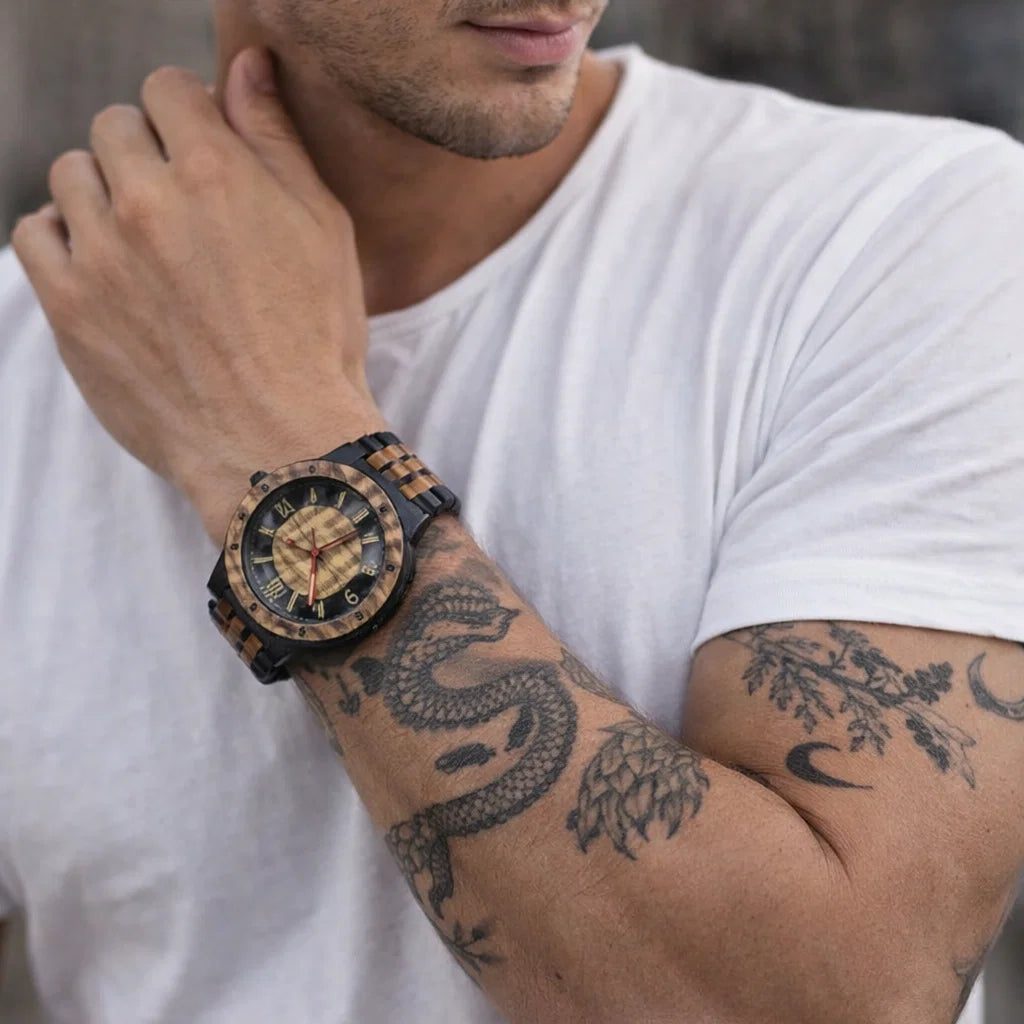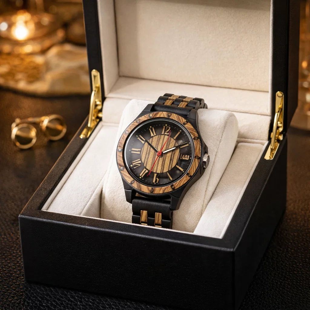 🔗 Strap Material: Wood & Genuine Leather – comfortable and stylish blend