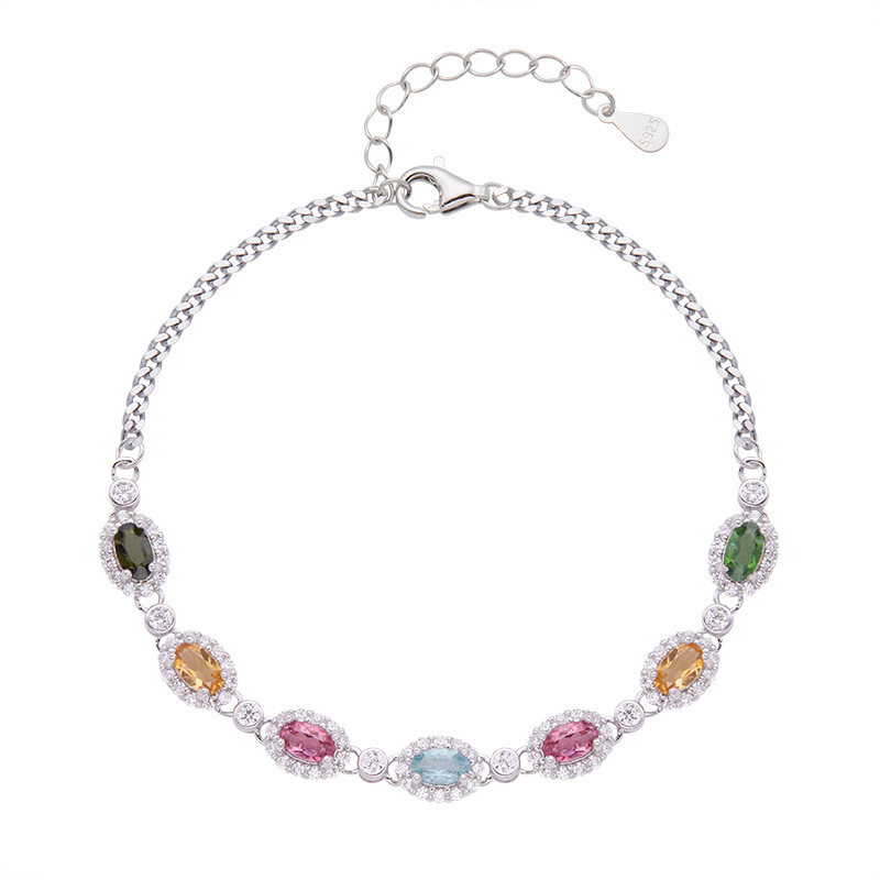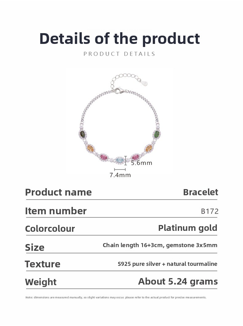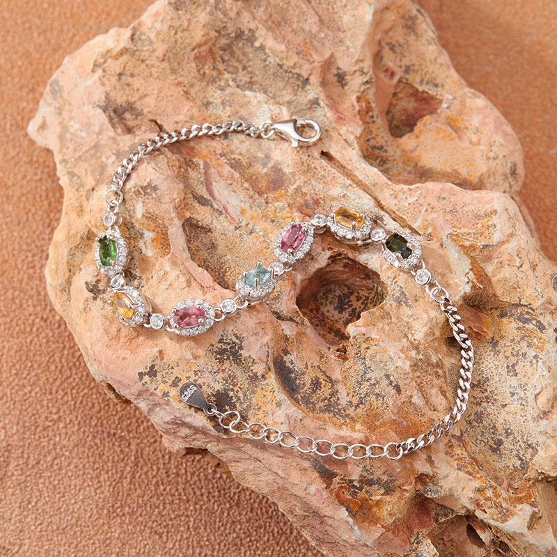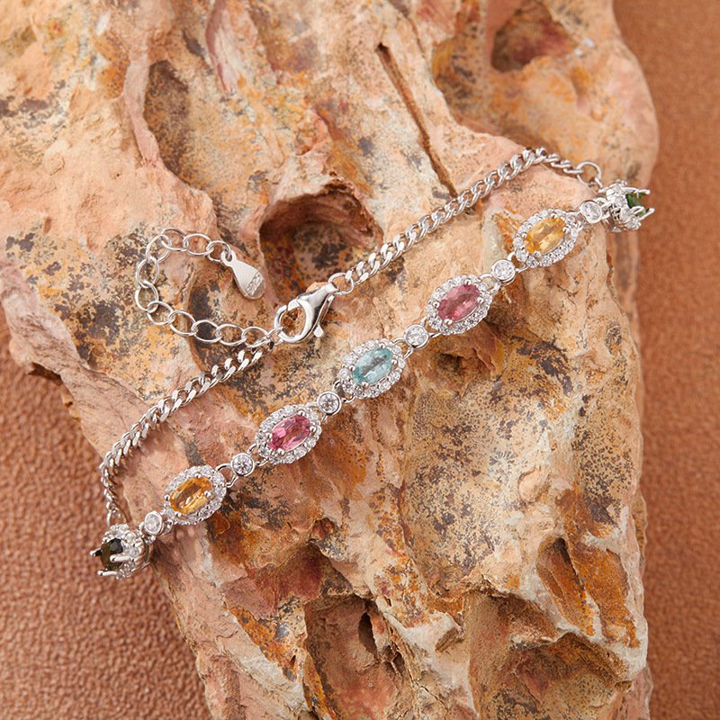 💎 1 × Women Natural Tourmaline 925 Sterling Silver Bracelet