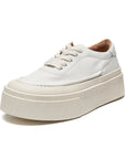 Women's Platform Board Shoes - Embossed Cowhide Leather Sneakers (Black/White) - Chunky Rubber Sole Tie-Up Sports Shoes